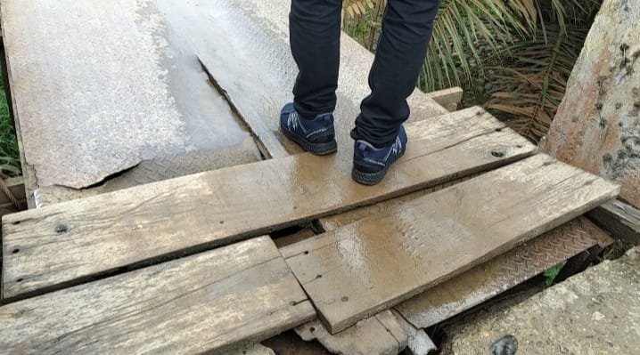 Berdasarkan pantauan awak media Berita Istana Negara, kondisi jembatan saat ini sangat memprihatinkan. Selain berlubang di beberapa bagian, kayu dan tali gantungan jembatan juga sudah mengalami kerusakan parah, sehingga membahayakan pengguna yang melintas.