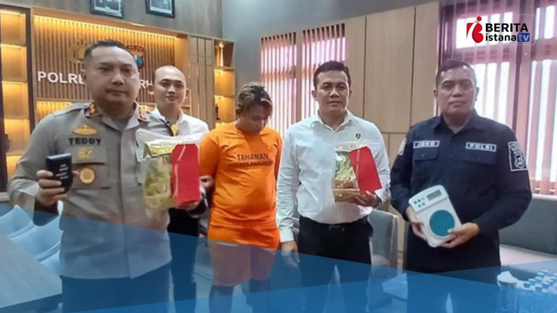 Dari tangan pelaku, polisi menyita barang bukti berupa dua bungkus teh Cina berisi sabu. Masing-masing bungkus memiliki berat 1.040 gram dan 1.035 gram, sehingga total berat sabu yang diamankan mencapai 2.075 gram.