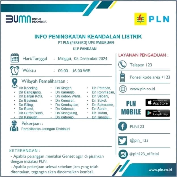 Pasuruan – Konsumen listrik di wilayah Pandaan akhir-akhir ini mengeluhkan seringnya pemadaman listrik yang terjadi tanpa pemberitahuan terlebih dahulu. Kejadian ini dirasa merugikan, terutama bagi para pengusaha dan masyarakat yang bergantung pada keandalan listrik.