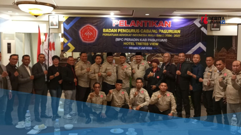 Pasuruan-BIN – Sueb Efendi, SH, Ketua Badan Pengurus Cabang (BPC) Persatuan Advokat Indonesia (PERADIN) Pasuruan Raya, kembali dilantik untuk periode kedua. Acara pelantikan dan penyerahan Surat Keputusan (SK) kepengurusan BPC PERADIN Pasuruan berlangsung di Hotel Royal View, Prigen, pada Minggu (7/7/2024).